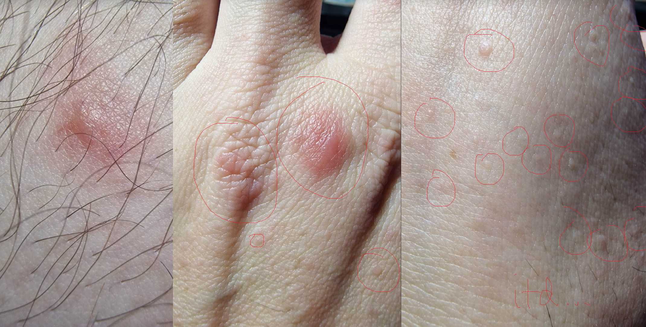 No i nic nie znikło, pojawia się nowe, do tego doszły te białe grudki. Zmiany są mocno swędzące, czasami płaskie, czasami mocno wypukłe (napęczniałe). Zdarza się, że rano nie ma po nich żadnego śladu (nawet kolor skóry wraca do normy) a wieczorem jest bąbel jak groch i cały czerwony lub fioletowy. Zmiany są na całym ciele, w szczególności ręce, pośladki, uda. Gdyby ktoś chciał zobaczyć na żywo to mogę podjechać w Krakowie lub okolicach.