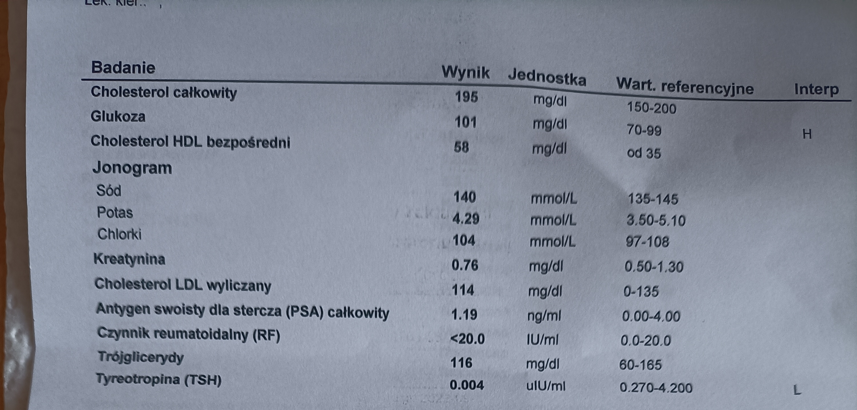 Interpretacja wyników krwi IG - 0.10 TSH - 0.004
